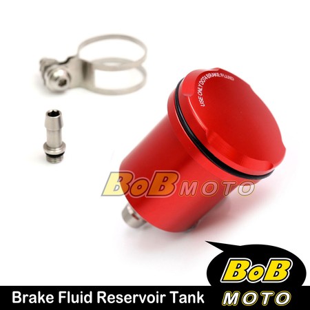 - BobMoto CNC Rear Brake Oil Fluid Tank* CNC Machined Billet * High Quality Aluminium T6061-T6 * Hard Anodized * 100% New * Replacing the stock Rear Brake Bottle * Lightweight, Water-Resistant & Shockproof * Simple Installation Informations Brand: BobMoto Contents: 1 pc. of Rear Brake Oil Tank 1 pc. of Mounting Bracket Stainless Steel Hose Connectors (6mm & 8mm) are free for flexible installation Color: Gold Important : Only applicable For Brake Oil DOT 3 or DOT 4 .