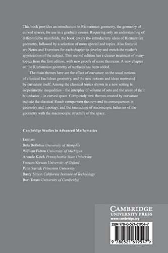 Riemannian Geometry: A Modern Introduction (Cambridge Studies in Advanced Mathematics, Series Number 98)