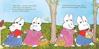 - All Max wants to do is eat the chocolate chicken that someone left in the birdbath one fine spring morning. But "wait, Max," his sister Ruby says, "First we go on an egg hunt." Max does his best to play along, but when Ruby finds all the eggs-and he finds only ants and acorns-he shows her what can happen when you put all your eggs in one basket!