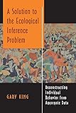 - This book provides a solution to the ecological inference problem, which has plagued users of statistical methods for over seventy-five years: How can researchers reliably infer individual-level behavior from aggregate (ecological) data? In political science, this question arises when individual-level surveys are unavailable (for instance, local or comparative electoral politics), unreliable (racial politics), insufficient (political geography), or infeasible (political history). This ecological inference problem also confronts researchers in numerous areas of major significance in public policy, and other academic disciplines, ranging from epidemiology and marketing to sociology and quantitative history. Although many have attempted to make such cross-level inferences, scholars agree that all existing methods yield very inaccurate conclusions about the world. In this volume, Gary King lays out a unique--and reliable--solution to this venerable problem. King begins with a qualitative overview, readable even by those without a statistical background. He then unifies the apparently diverse findings in the methodological literature, so that only one aggregation problem remains to be solved. He then presents his solution, as well as empirical evaluations of the solution that include over 16,000 comparisons of his estimates from real aggregate data to the known individual-level answer. The method works in practice. King's solution to the ecological inference problem will enable empirical researchers to investigate substantive questions that have heretofore proved unanswerable, and move forward fields of inquiry in which progress has been stifled by this problem.