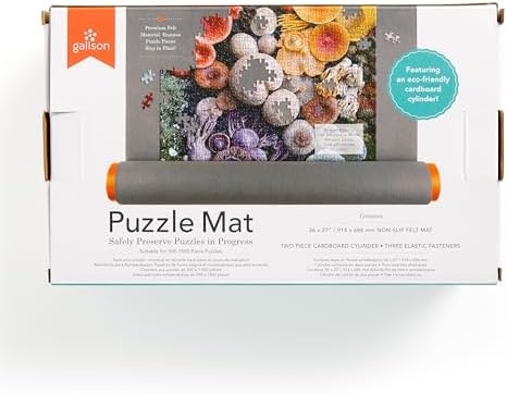 - PUZZLE MAT – The Puzzle Mat by Galison will safely preserve your 1500 piece (or less!) puzzles in progress. Premium felt fabric ensures your puzzle pieces stay in place so never lose a puzzle piece again! Included is a non-slip felt mat, two piece cardboard cylinder and three elastic straps.