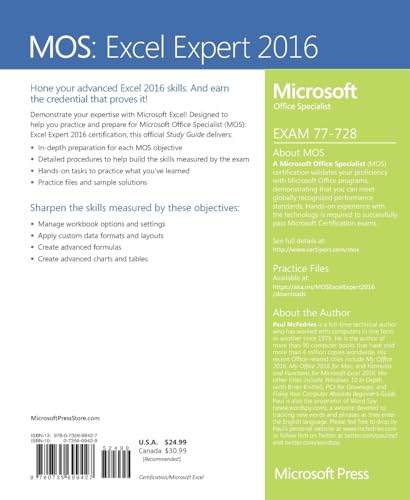 MOS 2016 Study Guide for Microsoft Excel Expert (MOS Study Guide)