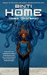 - The thrilling sequel to the Hugo and Nebula-winning Binti by Nnedi Okorafor, and a finalist for the 2018 Hugo and Nommo Awards It’s been a year since Binti and Okwu enrolled at Oomza University. A year since Binti was declared a hero for uniting two warring planets. A year since she found friendship in the unlikeliest of places. And now she must return home to her people, with her friend Okwu by her side, to face her family and face her elders. But Okwu will be the first of his race to set foot on Earth in over a hundred years, and the first ever to come in peace. After generations of conflict can human and Meduse ever learn to truly live in harmony? The Binti Series Book 1: Binti Book 2: Binti: Home Book 3: Binti: The Night Masquerade Praise for Nnedi Okorafor: "Binti is a supreme read about a sexy, edgy Afropolitan in space! It's a wondrous combination of extra-terrestrial adventure and age-old African diplomacy. Unforgettable!" - Wanuri Kahiu, award winning Kenyan film director of Pumzi and From a Whisper "A perfect dove-tailing of tribal and futuristic, of sentient space ships and ancient cultural traditions, Binti was a beautiful story to read.” – Little Red Reviewer “Binti is a wonderful and memorable coming of age story which, to paraphrase Lord of the Rings, shows that one girl can change the course of the galaxy.” – Geek Syndicate “Binti packs a punch because it is such a rich, complex tale of identity, both personal and cultural… and like all of Nnedi Okorafor’s works, this one is also highly, highly recommended.” – Kirkus Reviews "There's more vivid imagination in a page of Nnedi Okorafor's work than in whole volumes of ordinary fantasy epics." -Ursula K. Le Guin "Okorafor's impressive inventiveness never flags." - Gary K. Wolfe on Lagoon