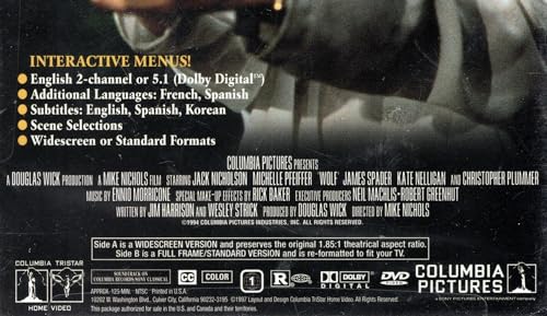 A mild-mannered book editor (Jack Nicholson) bitten by a wolf goes for the throat of all who have betrayed him. Michelle Pfeiffer co-stars.