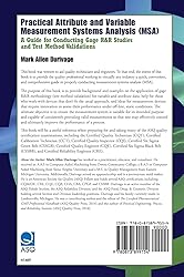 - This book was written to aid quality technicians and engineers. To that end, the intent of this book is to provide the quality professional working in virtually any industry a quick, convenient, and comprehensive guide to properly conducting measurement systems analysis (MSA). The purpose of this book is to provide background and examples on the application of gage R&R methodology (test method validation) for variable and attribute data, help for those who work with devices that don t fit the usual approach, and ideas for measurement devices that require innovation to assess their performance under off-line, static conditions. The ultimate objective is to ensure the measurement system is suitable for its intended purpose and capable of consistently providing valid measurements so that one may effectively control and ultimately improve the performance of a process. This book will be a useful reference when preparing for and taking many of the ASQ quality certification examinations, including the Certified Quality Technician (CQT), Certified Calibration Technician (CCT), Certified Quality Inspector (CQI), Certified Six Sigma Green Belt (CSSGB), Certified Quality Engineer (CQE), Certified Six Sigma Black Belt (CSSBB), and Certified Reliability Engineer (CRE).