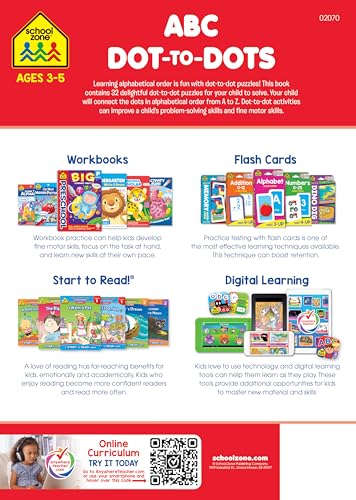 School Zone ABC Dot-to-Dots Workbook: 32 Pages, Preschool, Kindergarten, Learning Activities, Connect the Dots, Alphabet, ABC's, 123, Counting, Letter Puzzles, Ages 3-5 (Get Ready! Book Series)