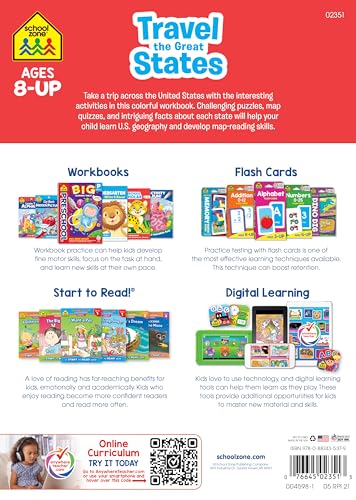 School Zone Travel the Great States Workbook: 64 Pages, 3rd Grade, Geography, Map-Reading, United States, Ages 8+ (Activity Zone Book Series)