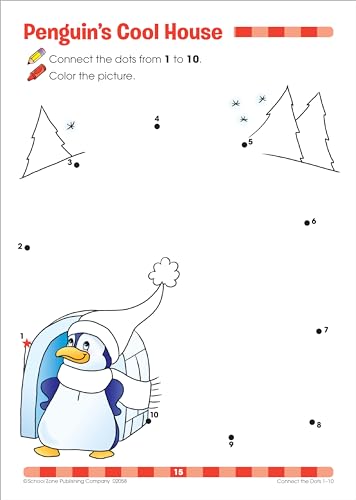 School Zone Connect the Dots Workbook: 32 Pages, Preschool, Kindergarten, Dot-to-Dots, Counting, Number Puzzles, Numbers 1-10, Coloring, Ages 3 to 5 (Get Ready! Book Series)