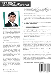 - Test Automation using HP Unified Functional Testing (UFT) 11.5, is the first book released globally on HP UFT 11.5 , which is the latest and enhanced version of the HP test automation tool, Quick Test Professional (QTP). This UFT book has been designed with the objectives of simplicity and ease of understanding. This book is recommended both for those who are beginning to learn test automation (using QTP) and for advanced automation users. Another major highlight of this book is that you will be learning on our custom developed web based application instead of windows based flight reservation application that comes by default with HP QTP/UFT. This application with enhanced test scenarios will bring you very close to real-time automation using HP QTP/UFT. With author's huge experience as corporate trainer on HP QTP/UFT, this book follows a unique training based approach instead of a regular text book approach. As a step by step guide, it guides the student through every step of the exercises with the help of snapshots. The book also covers the most common interview questions and answers for HP QTP/UFT. It covers new features of HP UFT 11.5 and also covers aspects of Integration of HP QTP/UFT with HP ALM (Quality Center) platform. It also discusses how to use VBscript in and working working with advanced scripting concepts in QTP/UFT. Author Navneesh Garg, has been a QTP/UFT expert, automation architect and corporate trainer on QTP/UFT for last 14+ years. He has worked on QTP versions, QTP 6.0, QTP 8.0, QTP.9.0, QTP 9.5, QTP10.0, QTP11.0 and UFT 11.5 for more than 10 years. Quotes from reviewers "A great hands-on guide on mastering automation using the new Unified Functional Testing(HP UFT) automation tool. An example custom build web based application used throughout the book ensures a quick grasp of key concepts. This book with its real life examples, is sure to benefit a novice beginner as well as seasoned automation professionals looking to step up to HP UFT 11.5, highly recommended" - S. Constancio "Outstanding book on HP QuickTest Professional (HP QTP). Rather than a text book approach, a training based approach to explain UFT features is an amazing concept. Also learning the tool over web based application is fabulous as we have complete web based application environment" - Philip Smith