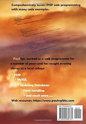- Revised and Updated Jan 2022 Edition 6 Written from a series of college lectures on PHP and MySQL this book is a practical look at programming. It starts with an introduction to PHP and then goes on to MySQL and how to use SQL with the PHP language. It provides an introduction to web programming, how to display data from a database and update data to a database. It explains issues that you encounter in real world situations and provides the basic code from which you can then use for further development. Many of the Chapters consist of a series of examples and tasks which are intended to illustrate each point and concentrate on simplified code so that you can see how to use it. All code is available for download from the book's web site to make it easier for you. PHP and MySQL are a terrific open source combination to create dynamic database driven web sites which are being used in many web applications such as WordPress, Joomla and Drupal. This is where it's at - don’t be left behind - it is not as difficult as you think. What you need to know It would be helpful to have some experience in programming using one of the more popular languages such as Visual Basic, although this is not necessary. It would also be helpful if you have some HTML knowledge, but the code examples should provide you with what you need to know about HTML. Table of Contents * Introduction - Basic PHP concepts. * Variables - Variables, programming techniques and so on. * Forms and PHP - Posting data between forms. * Arrays - loops and array structures. * Basic PHP structures - using include files. * Functions - writing and using your own functions. * Posting Forms - how forms work. * Email Forms - an email form. * JavaScript - posting forms with JavaScript. * SQL and MySQL - Querying database tables using SQL. * An Example table - some example data. * Database Access - how to connect to a database. * Using PHP and MySQL - an example form. * Further PHP and MySQL - More PHP and MySQL. * Error handling and debugging - Simple methods to find errors. * Cookies and Sessions - When and where to use them. * Modifying Records - editing and updating databases with PHP and SQL. * Classes - An introduction to object orientated programming. * File Handling - Reading and writing to text files. * Regular Expressions and Validation - Some validation methods. * PDO Class - an example of a class for PDO. * PHP Cart - a full working shopping cart example. * PHP security - Some methods to overcome this issue. * jQuery, Ajax and Bootstrap. * htaccess and php.ini - how to use them. * WordPress Plugins - an introduction to creating a WordPress Plugin. * Appendix - XAMPP server, MySQL Management and PHP 8. Note that you do not have to have a Kindle to read the eBook. You can download and read it on a desktop computer, tablet or any other device that has a compatible Kindle software reader. New in this edition As time has moved on and the technology has changed and improved, it is important to keep up to date with the latest methods in PHP, MySQL, front-end development with jQuery and associated methods. In this new edition, I have added new examples, expanded code explanations and updated material. In particular: * The removal of code and descriptions only relevant to PHP versions earlier than PHP 7. * Expansion of code examples. * More explanation of code as used for connecting to databases using PDO and mysqli. * Further details in data validation. * Best coding principles and practices. * Plus many other changes.