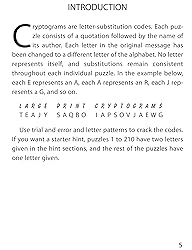 - Hard on the brain, easy on the eyes! Challenging, baffling, and absorbing, these cryptograms are easy to read in large-size print. The strings of seemingly meaningless letters are actually carefully coded messages that will test and stimulate your wordplay skills. You don't have to be a professional code breaker or super spy to figure them out, and there's no need to struggle while reading them. All you have to do is enjoy solving the puzzles!