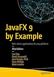 - Create media-rich client applications using JavaFX 9 and the Java 9 platform. Learn to create GUI-based applications for mobile devices, desktop PCs, and even the web. Incorporate media such as audio and video into your applications. Interface with hardware devices such as Arduino and Leap Motion. Respond to gesture control through devices such as the Leap Motion Controller. Take advantage of the new HTTP2 API to make RESTful web requests and WebSockets calls.New to this edition are examples of creating stylized text and loading custom fonts, guidance for working with Scene Builder to create visual layouts, and new content on developing iOS and Android applications using Gluon mobile. The book also covers advanced topics such as custom controls, JavaFX 3D, gesture devices, printing, and animation. Best of all, the book is full of working code that you can adapt and extend to all your future projects.Is your goal to develop visually exciting applications in the Java language? Then this is the book you want at your side. JavaFX 9 by Example is chock-full of engaging, fun-to-work examples that bring you up to speed on the major facets of JavaFX 9. You'll learn to create applications that look good, are fun to use, and that take advantage of the medium to present data of all types in ways that engage the user and lead to increased productivity. The book:Has been updated with new content on modular development, new APIs, and an example using the Scene Builder toolIs filled with fun and practical code examples that you can modify and drop into your own projectsIncludes an example using Arduino and an accelerometer sensor to track motion in 3DHelps you create JavaFX applications for iOS and Android devicesWhat You'll Learn Work with touch-based interfaces Interpret gesture-based events Use shapes, color, text, and UIcontrols to create a simple click and point gameAdd audio and video to your projects Utilize JavaFX 3DCreate custom controls using CSS, SVG, and Canvas APIs Organize code into modules using Java Platform Module System (Project Jigsaw) Who This Book Is For Java developers developing visual and media-rich applications to run on PCs, phones, tablets, Arduino controllers, and more. This includes developers tasked with creating visualizations of data from statistical analysis and from sensor networks. Any developer wanting to develop a polished user-interface in Java will find much to like in this book.