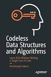 - In the era of self-taught developers and programmers, essential topics in the industry are frequently learned without a formal academic foundation. A solid grasp of data structures and algorithms (DSA) is imperative for anyone looking to do professional software development and engineering, but classes in the subject can be dry or spend too much time on theory and unnecessary readings. Regardless of your programming language background,Codeless Data Structures and Algorithmshas you covered. In this book, author Armstrong Subero will help you learn DSAs without writing a single line of code. Straightforward explanations and diagrams give you a confident handle on the topic while ensuring you never have to open your code editor, use a compiler, or look at an integrated development environment. Subero introduces you to linear, tree, and hash data structures and gives you important insights behind the most common algorithms that youcan directly apply to your own programs. Codeless Data Structures and Algorithms provides you with the knowledge about DSAs that you will need in the professional programming world, without using any complex mathematics or irrelevant information. Whether you are a new developer seeking a basic understanding of the subject or a decision-maker wanting a grasp of algorithms to apply to your projects, this book belongs on your shelf. Quite often, a new, refreshing, and unpretentious approach to a topic is all you need to get inspired. What You'll LearnUnderstand tree data structures without delving into unnecessary details or going into too much theoryGet started learning linear data structures with a basic discussion on computer memory Study an overview of arrays, linked lists, stacks and queues Who This Book IsForThis book is for beginners, self-taught developers and programmers, and anyone who wants to understand data structures and algorithms but don’t want to wade through unnecessary details about quirks of a programming language or don’t have time to sit and read a massive book on the subject. This book is also useful for non-technical decision-makers who are curious about how algorithms work.