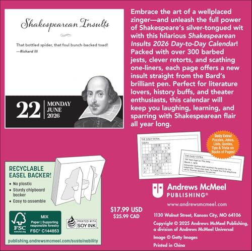 Shakespearean Insults 2026 Day-to-Day Calendar