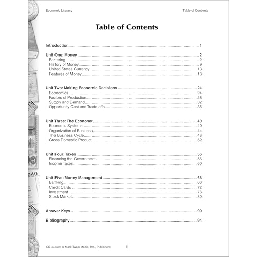 Mark Twain Economics Workbook, Grades 6-12 Financial Literacy Books, Money Management, Economy, and Taxes With Math Practice, Classroom or Homeschool Curriculum