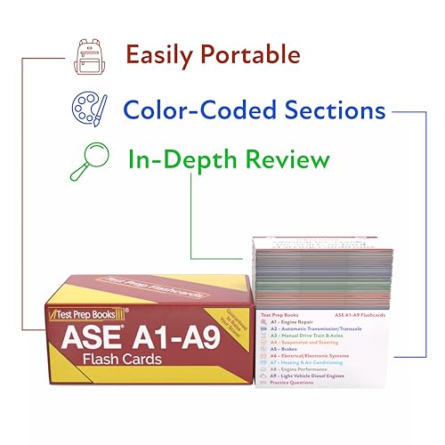ASE Study Cards A1-A9: ASE Certification Test Prep and Practice Test Questions [Full Color Cards]