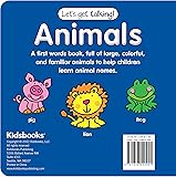 - A first words book, full of large, colorful, and familiar animals to help children learn animal names.