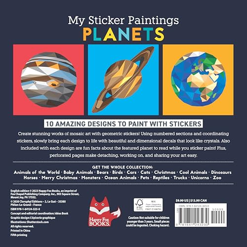 My Sticker Paintings: Planets: 10 Magnificent Paintings (Happy Fox Books) For Kids 6-10 - The Solar System from the Sun to Neptune, with Up to 90 Removable, Reusable Stickers per Design