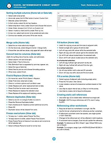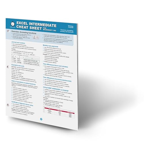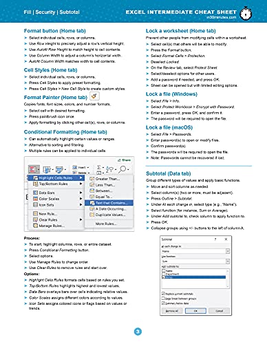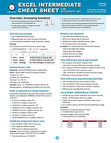 Excel Intermediate Cheat Sheet for Microsoft 365: Functions, formatting, security, and shortcuts (Windows/macOS)