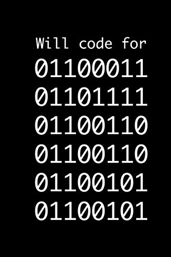 Will Code for Coffee: Binary Joke Cover on Notebook for Coders Programmers App Developers who Love Coffee | Blank Lined Notebook 150 pages 6x9