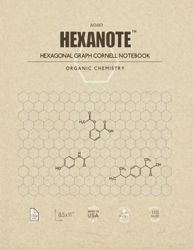 HEXANOTE - Hexagonal Graph Cornell Notebook - Organic Chemistry: 110 pages large hexagonal graph paper notebook for drawing organic chemistry ... style with top and side margins for notes.