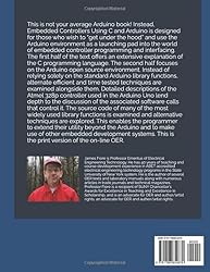 - This is not your average Arduino book! Instead, Embedded Controllers Using C and Arduino is designed for those who wish to “get under the hood” and use the Arduino environment as a launching pad into the world of embedded controller programming and interfacing. The first half of the text offers an extensive explanation of the C programming language. The second half focuses on the Arduino open source environment. Instead of relying solely on the standard Arduino library functions, alternate efficient and time tested techniques are examined alongside them. Detailed descriptions of the Atmel 328p controller used in the Arduino Uno lend depth to the discussion of the associated software calls that control it. The source code of many of the most widely used library functions is examined and alternative techniques are explored. This enables the programmer to extend their utility beyond the Arduino and to make use of other embedded development systems. This is the print version of the on-line OER. The current revision number and date are version 2.1.11, 15 October 2024.