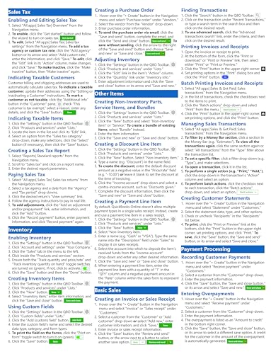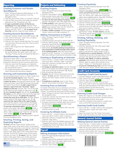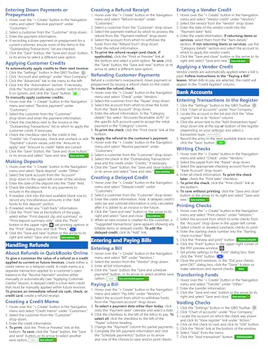 QuickBooks Online Quick Reference Training Card - Laminated Tutorial Guide Cheat Sheet (Instructions and Tips)