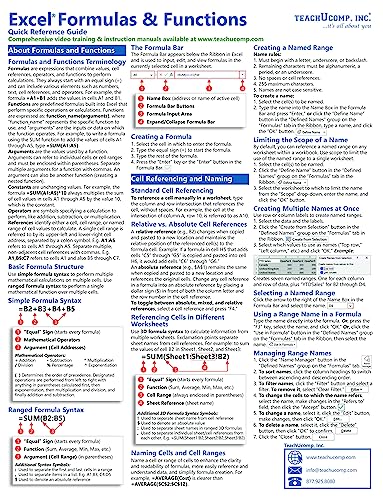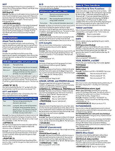 Microsoft Excel Formulas and Functions Laminated Quick Reference Training Tutorial Guide Cheat Sheet (Instructions and Tips)