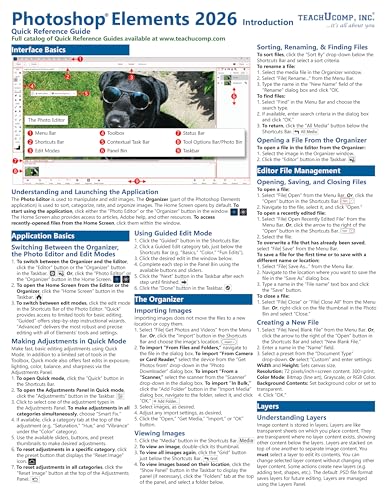 Adobe Photoshop Elements 2026 Introduction Quick Reference Training Tutorial Guide (Cheat Sheet of Instructions, Tips & Shortcuts - Laminated Card)