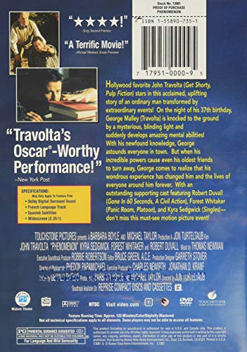Hollywood favorite John Travolta (SWORDFISH, PULP FICTION) stars in this acclaimed, uplifting story of an ordinary man transformed by extraordinary events! On the night of his 37th birthday, George Malley (Travolta) is knocked to the ground by a mysterious, blinding light and suddenly develops amazing mental abilities! With his newfound knowledge, George astounds everyone in town. But when his incredible powers cause even his oldest friends to turn away, George comes to realize that his wondrous experience has changed him and the lives of everyone around him forever. With an outstanding supporting cast featuring Robert Duvall (SOMETHING TO TALK ABOUT), Forest Whitaker (SPECIES), and Kyra Sedgwick (SINGLES) -- don't miss this must-see motion picture event!