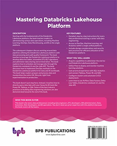 Mastering Databricks Lakehouse Platform: Perform Data Warehousing, Data Engineering, Machine Learning, DevOps, and BI into a Single Platform (English Edition)