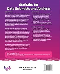 - DescriptionStatistics is a powerful tool for data analysis, visualization, and inference. Python is a popular programming language that offers a rich set of libraries and frameworks for statistical computing. Together, they can help you solve real-world problems and make informed decisions based on data. This book teaches you how to use Python to implement statistical concepts and techniques in a practical and effective way. You will also learn how to perform data science and analysis to generate insights, patterns, and trends. This book introduces the basics of statistics, such as descriptive and inferential statistics, ML, probability distributions, hypothesis testing, and confidence intervals. It also covers advanced topics such as regression analysis, linear algebra, statistical tests, time series, survival, and correlation analysis. You will learn how to identify patterns, interpret data, and make data-driven decisions. The book emphasizes practical learning with examples, exercises, and code snippets using popular Python libraries like NumPy, Pandas, Matplotlib, Seaborn, and SciPy to perform various statistical tasks. By the end of this book, you will have a solid foundation in statistics and Python programming. You will be able to explore, analyze, and visualize data using Python. You will also be able to perform various statistical tests and interpret the results.Key Features● Learn how to analyze data using statistics, with a focus on cutting-edge statistical methods, modeling, and visualization.● Explore topics from basic to advanced, including data visualization, statistics, machine learning (ML), and large language models (LLMs).● Includes clear examples, hands-on tutorials, and a real-world project to apply all concepts.What you will learn● Master data manipulation, cleaning, and visualization techniques using Python.● Apply core statistical methods to analyze real-world datasets.● Build and evaluate statistical models for regression, classification, and clustering.● Interpret and communicate insights derived from statistical analyses effectively.● Explore advanced statistical techniques like time series and survival analysis.Who this book is forThis book is ideal for data scientists, ML engineers, statisticians, Python practitioners, researchers, and anyone who works with data and statistics.Table of Contents1. Foundations of Data Analysis and Python2. Exploratory Data Analysis3. Frequency Distribution, Central Tendency, Variability4. Unravelling Statistical Relationships5. Estimation and Confidence Intervals6. Hypothesis and Significance Testing7. Statistical Machine Learning8. Unsupervised Machine Learning9. Linear Algebra, Nonparametric Statistics, and Time Series Analysis10. Generative AI and Prompt Engineering11. Real World Statistical Applications