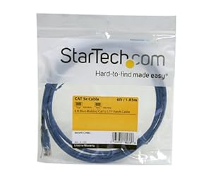 - Our wide selection of Cat 5e patch cables makes it easy to find the lengths and colors that you need to complete your network connections. Our Ethernet cables are: Designed for use with Fast Ethernet networks Patches from hub to distribution panel Connects workstation to wall outlet Molded strain relief prevents the cable from being bent at sharp angles at the RJ45 connector, to minimize the stress at the plug termination point 50-micron gold connectors ensure optimum conductivity while eliminating network signal loss due to oxidation or corrosion Backed by StarTech.com lifetime warranty Specifications Warranty Information Warranty Lifetime Connector(s) 1 - Connector A RJ-45 1 - Connector B RJ-45 Hardware Number of Conductors 4 Pair UTP Cable Jacket Material PVC - Polyvinyl Chloride Fire Rating CMG Rated (General Purpose) Cable Type Molded Wiring Standard TIA/EIA-568-B.1-2001 T568B Packaging Information Package Height 0.4 in [10 mm] Package Length 8.7 in [22 cm] Shipping (Package) Weight 2.7 oz [77 g] Package Width 7.9 in [20 cm] Performance Cable Rating CAT5e - 350 MHz Physical Characteristics Weight of Product 2.4 oz [68 g] Color Blue Wire Gauge 24 AWG Conductor Type Stranded Copper Cable Length 6.0 ft [1.8 m] Product Length 6.0 ft [1.8 m] What's in the Box 1 - Included in Package 6 ft Blue Molded Cat5e UTP Patch Cable