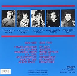 - 2002 vinyl LP reissue. The raw energy of The Adolescents announced the birth of the So. Cal. Punk scene. Brash lyrics and furious playing were their hallmarks that led to a cult status among punk afficianados. Their self-titled album from 1981 set the proverbial stage for everyone from The Dead Kennedys to Green Day and Offspring. Scoring a punk hit with "Amoeba," The Adolescents soon outgrew each other and split apart. Yet their attitude and high-intensity playing live on. Original copies of their only LP are nearly impossible to find, but this reissue on vinyl is a treat for punk fans and collectors. It is one of those rare albums you just can't miss. Frontier Records. Recorded at Perspective Sound, Sun Valley. Mastered at A&M, Hollywood by Frank DeLuna