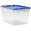 Akro-Mils KeepBox 12 Gallon Storage Container, Nesting and Stackable Plastic Storage Box with Lid Attached, Clear Tote for Garages, Closets, and Moving, 21-1/2" x 15" x 12-1/2", Clear/Blue