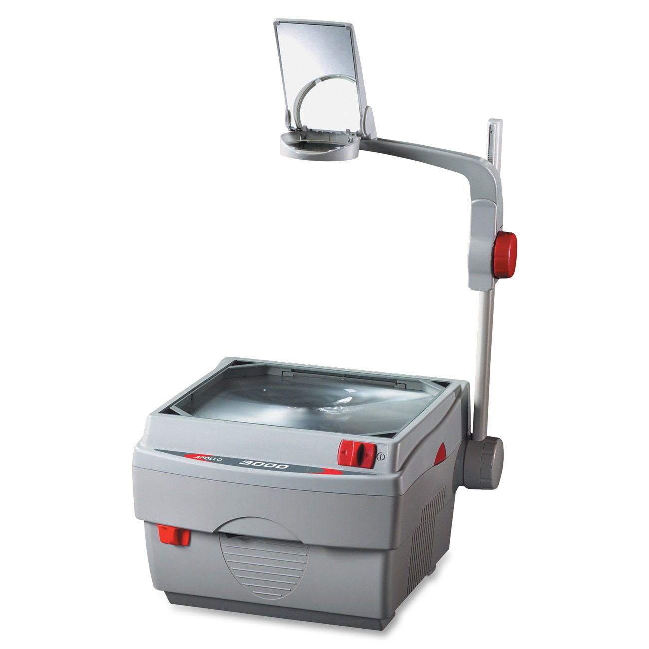 If it needs to be seen, it needs Apollo presentation products. Classrooms, conference rooms, or factory floors, anywhere there's a need for an overhead projector, there's an Apollo model that's right for the job. The Apollo 3000 Overhead Projector is the perfect feature-rich tabletop projector for mid-sized conference and meeting rooms with 50–100 people. This high-quality projector delivers reliability and ease-of-use and features a 3000 lumen light output. An open head that folds down or can be stored in the built-in storage compartment features a double fresnel lens to assure sharpness and brightness. The included lamp changer allows the user to instantly replace the lamp in the event of a lamp blowout by simply flipping a switch, and a high/low lamp control adapts the projector light to bright or dark presentations and extends lamp life. The Apollo 3000 features 11.25 x 11.25 Inch stage glass which allows the use of transparency sheets from edge to edge. This projector is lightweight and the convenient carry grips provide additional portability and ease of transportation. The Kensington Security Slot locks offer theft prevention and the 2-year limited warranty adds piece of mind to your purchase. Count on Apollo projectors, transparency films, and accessories to deliver crisp, bright presentations every time.