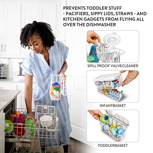 - Includes patented infant basket, toddler basket and spill proof cup valve cleaner