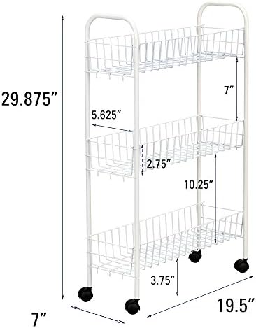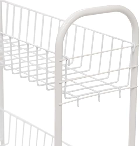 Household Essentials 05121 Slim Line 3-Tier Metal Storage Cart | Laundry Room Rolling Organizer | White.