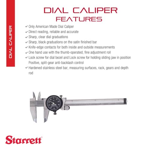 Starrett Dial Caliper - Precision Measurement, Durable Stainless Steel - Black Color Dial, 0-6 Inches Range, .001 Inches Graduations, 1-1/2 Inches Dial Diameter - B120A-6