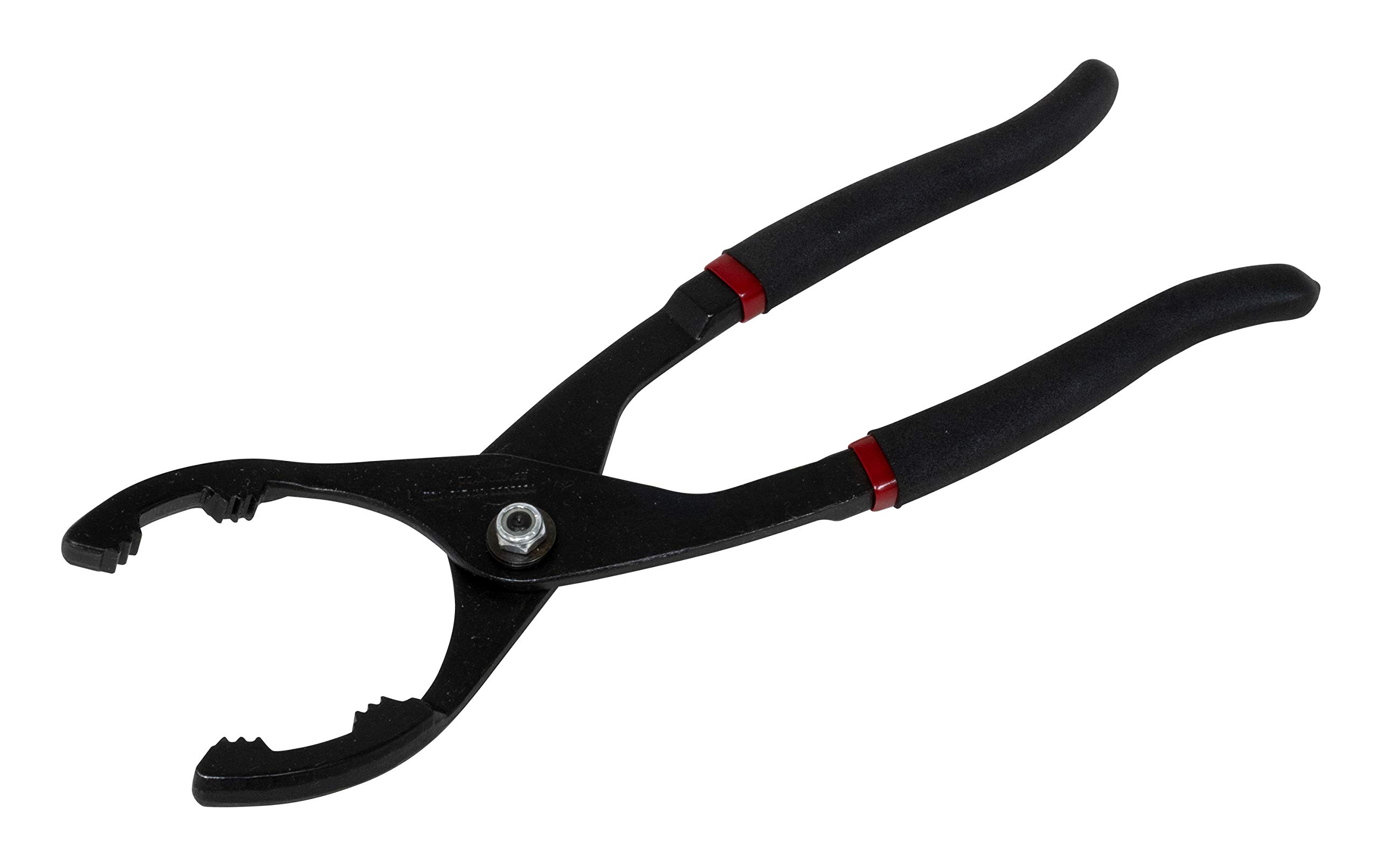 - Steel jaws grip filter without slipping. Works in tight spots from the front of the filter using 3/8" drive.