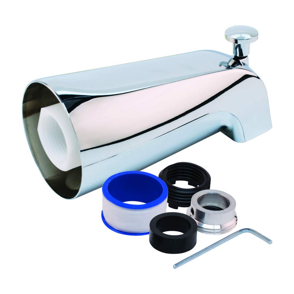Simplify your plumbing and home improvment projects with the slide-on diverter spout for bathtunb faucets. Composed of durable zinc, these diverter spouts protect against flaking, are corrosion free, and feature a universal design that is great for replacement or new applications. This tub spigot diverter is compatible with 1/2 inch copper pipe, is equipped with hex wrench, and features a set screw and diverter on the nose for easy installation.