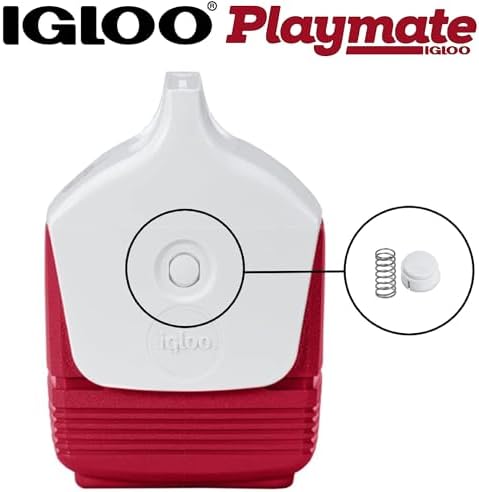 Incluye 2 piezas: 1 botón de plástico, 1 resorte de metal Compatible con el modelo 43400 de Playmate ArmorTM, el modelo 13054 de Playmate, el modelo 43582 de Playmate The BossTM, y los modelos obsoletos de Playmate, Playmate PlusTM y Little Playmate Para instalarlo: abre completamente la tapa de la hielera para que el orificio del botón quede claro y visible. Coloque el enfriador en su extremo de manera que el orificio del botón quede recto hacia arriba. Inserte el resorte en el orificio y alinee la tapa de plástico con el resorte. Mientras presionas el botón (manteniéndolo presionado), cierra la tapa de la hielera y el botón debería quedar en su sitio. Fabricado por Igloo. Cuidado: limpie las superficies con un paño entre usos. La suciedad leve o las manchas se pueden limpiar con agua o un detergente suave. Asegúrese de que todos los agentes de limpieza estén completamente enjuagados y secos antes de guardarlos.