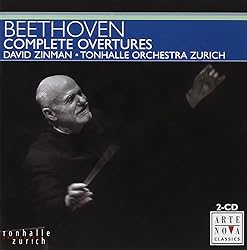 - "Of course this is what Beethoven is supposed to sound like. All the warmth, the breadth, the depth, the height, the solemnity, the hilarity, the agony, and, of course, the wild-eyed ecstasy that are in Beethoven in these performances of his complete Overtures by David Zinman leading the Tonhalle Orchestre Zurich. As Zinman proved in his cycle of the nine symphonies, he knows Beethoven, knows his music and his moods, knows when to hold back and when to let loose, when to dance and when to sing in blissful rapture. In his cycle of the 11 overtures, Zinman soars with Die Geschöpfe des Prometheus, rails with Egmont, roars with Coriolan, and laughs with König Stephen. Zinman is as heroic as Fidelio, as passionate as Leonore, and as countrapuntally intoxicated as Die Weihe des Hauses. The Tonhalle Orchestre, which showed itself an adept and powerful Beethoven orchestra in the symphonies, once again shows its colors, its strength, and its tenderness in the overtures. ! Arte Novas sound is deep, lush, and real."-ALL MUSIC GUIDE