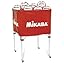 Red/white/blue, heavy-duty nylon carrier with reinforced alumnimum frame ball cart, measures 25" x 25" x 39". Provides ample room for storage and transportation of up to 30 volleyballs or 24 water polo balls. Comes complete with casters and durable rubber wheels. Side pocket for storing coaches' clipboards, etc. When not in use, the cart collapses quickly and stores anywhere. Specs: Collapsible; Sturdy Alumuminum alloy frame; Caster wheels; Includes matching nylon carrying bag w/adjustible; shoulder strap