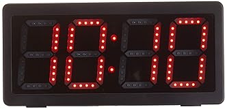 Perfect for sporting events Easily readable 4" LED numbers 99:59 up/down timing 12/24-hour clock 120 volt A/C power 8-hour rechargeable battery