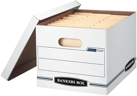 Bankers Box Basic Duty file storage boxes are the ideal solution for budget-friendly document organization. Designed for standard office tasks, these cardboard file boxes with lids offer dependable storage for letter and legal-size paperwork. With easy-to-assemble construction and lift-off lids, they’re perfect for archiving, seasonal file rotation, and short-term projects. Built with 60% recycled materials, they support sustainability while helping professionals stay organized. Whether you're clearing out a desk, prepping for tax season, or storing inactive files, these storage file boxes deliver simplicity and value in one compact package. Box inside dimensions: 12 x 10 x 15 Inches.