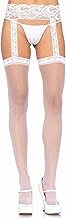 Leg Avenue Women's Sheer Stockings with Attached Garter Belt, Black Lace, One Size
