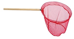 - Super sturdy net makes it a breeze to catch flying critters. 26" long with a 14" wooden handle that's easy for younger kids to use. In 3 assorted colors: blue, red and orange. Net opening is 12" diameter. Sorry, no color choice.