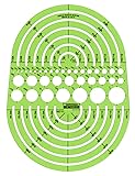 Features 62 circles Sizes from 3/64 to 7-1/2 inches in diameter Translucent green template Template size 7-1/2 x 10-3/8 inches Made in USA