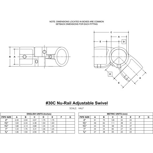 ' Structural Fitting, Type Adjustable Swivel (2 Piece), Nominal Pipe Size (In.) 1-1/4, Dia. 1.66 In., Material Tensile Strength (Lb.) 30, 000, Material Aluminum, Setscrew Internal/External CamCar Knurled, Resists Corrosion, Standards OSHA, IBC, BOCA, SBC and UBC, Package Quantity 2 '